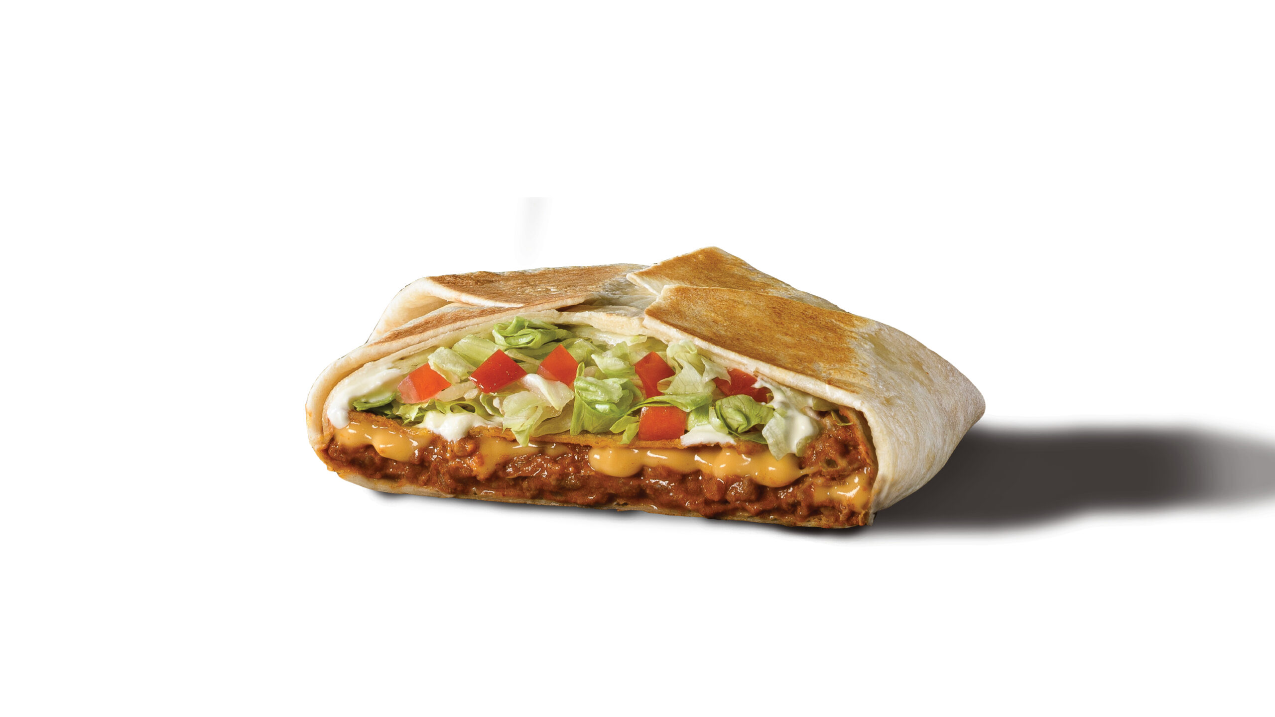 Your choice of protein, nacho cheese sauce, crunchy tostada, sour cream, lettuce and tomato inside a warm toasted tortilla in our signature six-sided wrap!