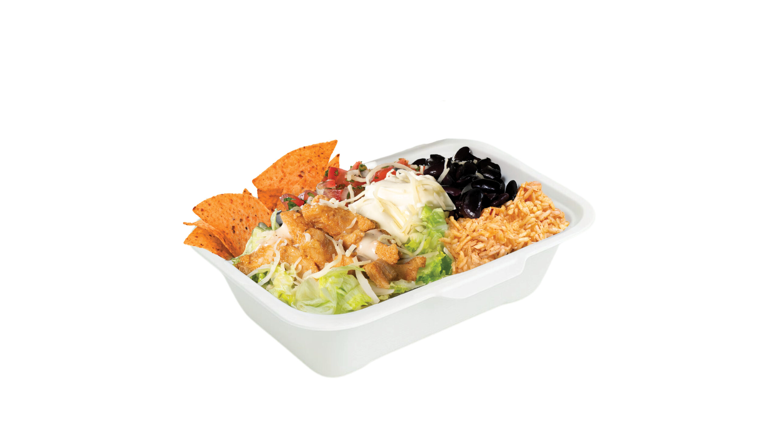 A bed of Mexican seasoned rice and fresh lettuce topped with your choice of filling, guacamole, black beans, sour cream, fiesta salsa, cheese and zesty ranch dressing.